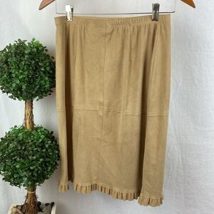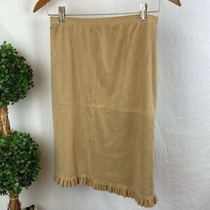 J Jill Tan Faux Suede Ruffle Hem Knee Length Skirt S