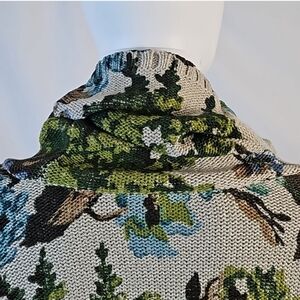J. Jill Tan Green Turquoise Floral Knit Turtleneck Pullover Sz. L Sweater