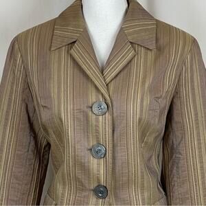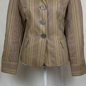 J Jill Tan Striped Office Career Academia Prep Blazer Jacket NWOT Size 10