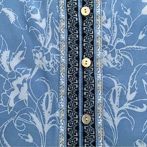 J. Jill Tank Top Sz M Blue Floral Buttons Rayon Tunic Boho Casual Vacation