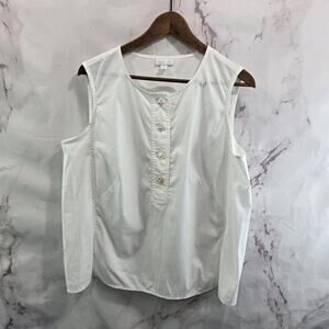 J Jill Tank Top Womens Large P White Button Up Poplin Cotton Stretch Petite