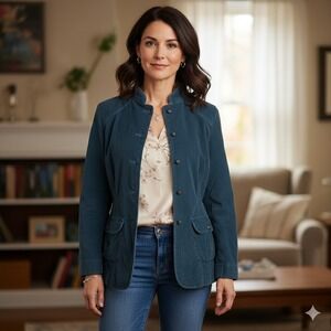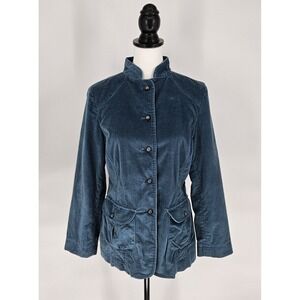 J. Jill Teal Velour Cotton Military Style Jacket Mandarin Collar Womens Size 6