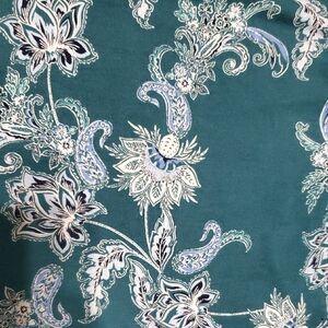 Elegant teal maxi dress with white floral pattern. Sleeveless design. Perfect for casual or formal occasions. size large tall. light blue and white floral on teal background comfy stretch fabric with side splits for walking. perfect all around summer dress