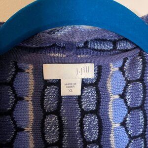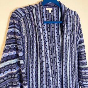 J. Jill Textured Striped Open Front Cotton Blend Blue Cardigan - XL