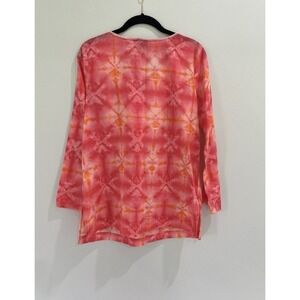 J. Jill Tie Dye Beaded Embroidered Long Sleeve Tunic Blouse Pink Size X Small