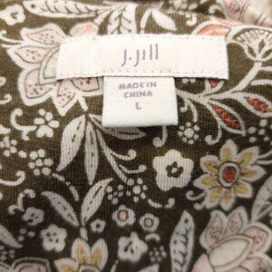 J Jill TierMaxi Floral Dress Women L Boho Khaki Green Slvless Cottage core Chic