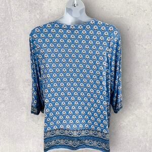 J Jill Top 5X Blue Boho Floral Border Print Scoop Neck Peasant Festival