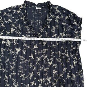 J. Jill Top Floral Bird Short Sleeve Blouse Ruffle Navy Blue Womens Size 4X