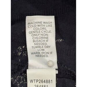 This J. Jill blouse features a charming floral pattern on a navy background. Its loose fit and short sleeves enhance comfort and breathability.