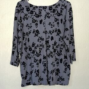 J. Jill Top Large Blue Floral Wearever Collection Pleated Back Tunic Lagenlook