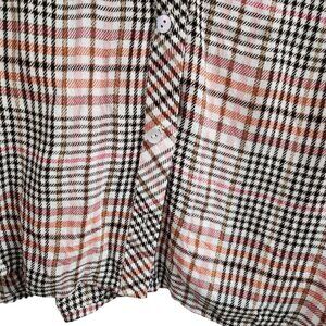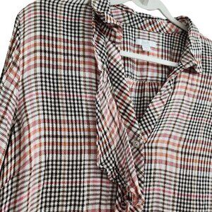 J. Jill Top Large Tall Pink Brown Houndstooth Plaid Ruffled Button Up Blouse