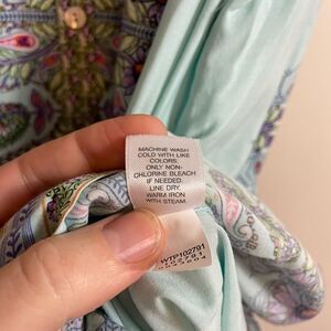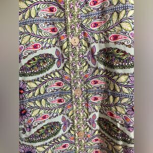 This J. Jill tunic is a stunning addition to any bohemian lover's wardrobe. Featuring a beautiful paisley pattern, a round neckline, and a button closure, this sleeveless tunic is perfect for a day at the beach or a night out with friends