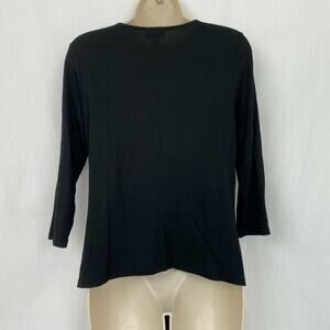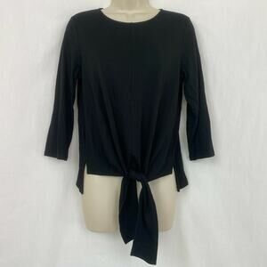 J Jill Top S Petite Black Tie Front Scoop Neck 3/4 Sleeve Stretch Knit SP PS