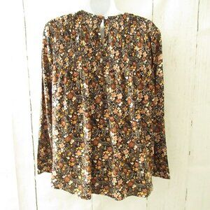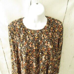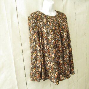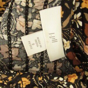 J Jill Top S Small Petite Black Brown Floral Paisley Long Sleeve Boho Peasant