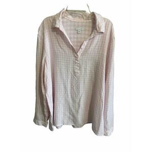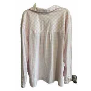 J Jill Top Shirt Pink and White Check Large Long Sleeve Button Up (b)