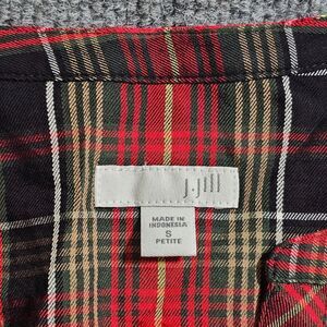 J Jill Top Shirt Womens Small Petite Red Plaid Long Sleeve V Neck Button Classic