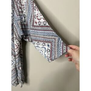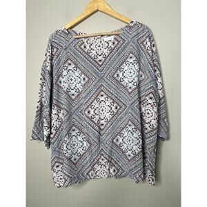 J. Jill Top Size 2X Patchwork Diamond Print 3/4 Sleeve Button Back Boho Flowy