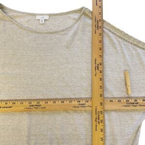 J. Jill Top Tan Striped Linen Blend Knit Dolman Crochet Trim Casual Boho