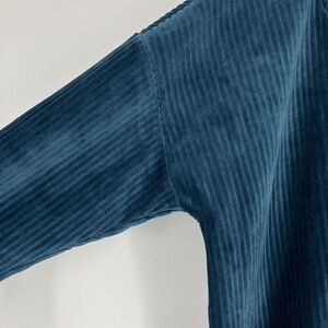 J Jill Top Size Medium Petite Teal Blue Velvet Long Sleeve Velour Stretch Boxy