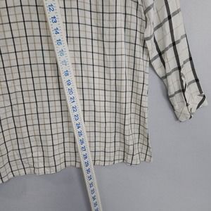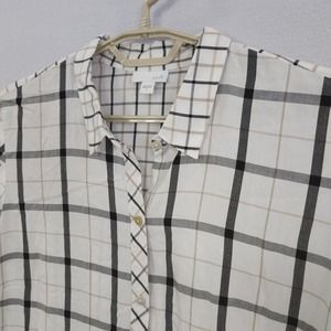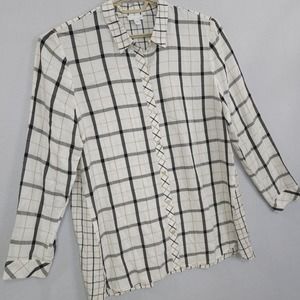 J Jill Top Tunic Women Ivory Large Long Sleeve Button Up Plaid Buttons Collared