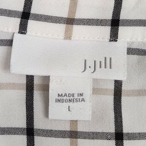 You're looking at a sweet J Jill Top Tunic Women Ivory Large Long Sleeve Button Up Plaid Buttons Collared.