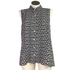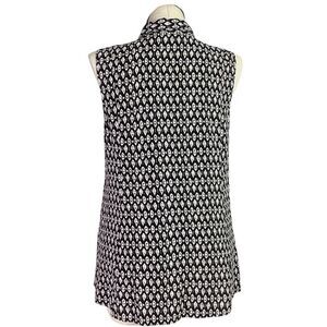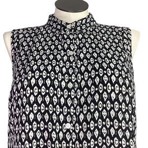 J Jill Top Women LP Petite Black White Ivory Geometric Sleeveless Button Tunic