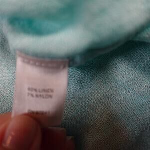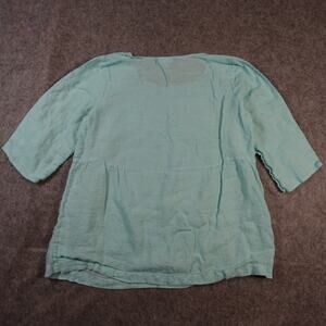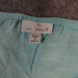 J. Jill Top Womens 1X Linen Blend Blouse 3/4 Sleeve Beachy Blue Crew Neck
