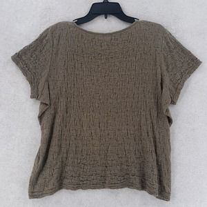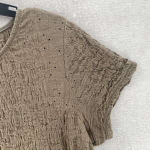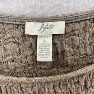 J Jill Top Womens Large Elastic All Over Smocked Brown Tan Blouse