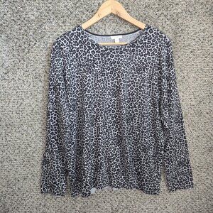 J Jill Top Womens Large Gray Animal Print Knit Scoop Neck Pullover Cotton Blend