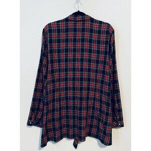 J Jill Top Womens Large Red Tartan Plaid Tie Front Tunic Button Up Preppy Boho