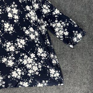 J Jill Top Womens Large Wearever Collection 3/4 Sleeve Navy Blue White Floral