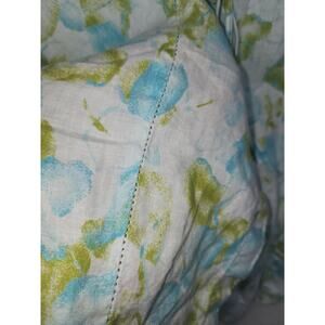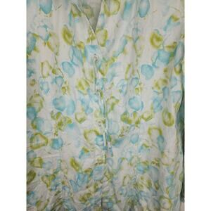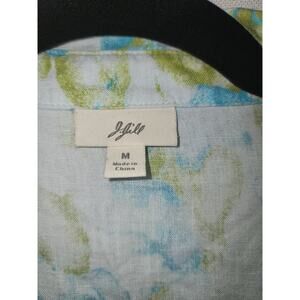 J Jill Top Womens M 100% Linen Blue & Kelly Green tassel watercolor leaf button