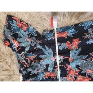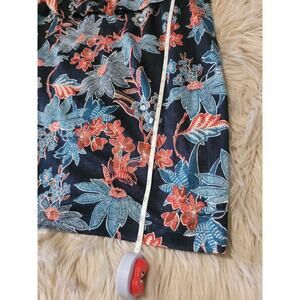 J Jill Top Womens Size M Blue Floral Love Linen Sarasa Ruffled Tropical Like new condition Bust/Chest 17.5" Overall Length 26"