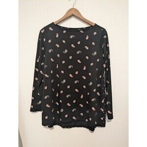 J Jill Top Womens M Black Pink Paisley Long Sleeve Patterned Cotton Blend