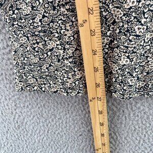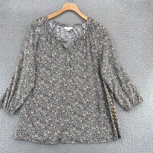 J Jill Top Womens Medium Ivory Black Floral 1/4 Button Long Sleeve Stretch Knit
