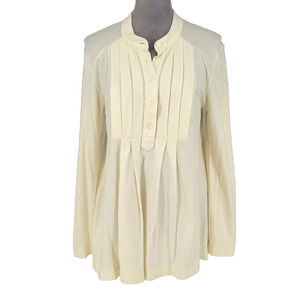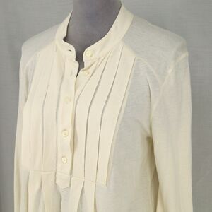 J Jill Top Womens Medium Ivory Cotton Knit Pleated Front Blouse Pullover Career