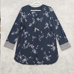 J. Jill Top Women's Navy Floral V-neck Relaxed Fit Large Tall Knit Rayon Stretch