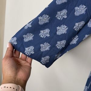 J Jill Top Womens Size L Seaside Woodblock Tunic Rayon 3/4 Sleeve Boho Coastal