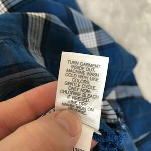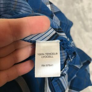 J. Jill Top Womens Small Blue Plaid Chambray 3/4 Sleeve A Line Hi Low Button