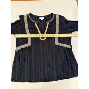 J Jill Top Womens Small Embroidered Striped Indie Boho Peasant Travel Prairie