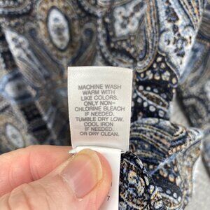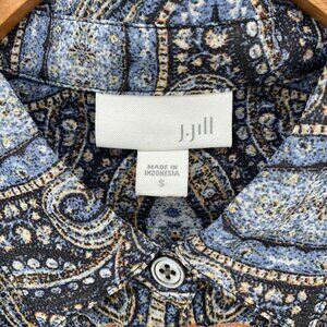 J Jill Top Womens Small Gray Multi Paisley Long Sleeve Tunic Button Up Collared