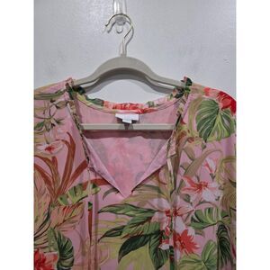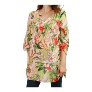 J. Jill Tropical Floral Print Lightweight Breezy Long Sleeve Tunic Top Dress, XL