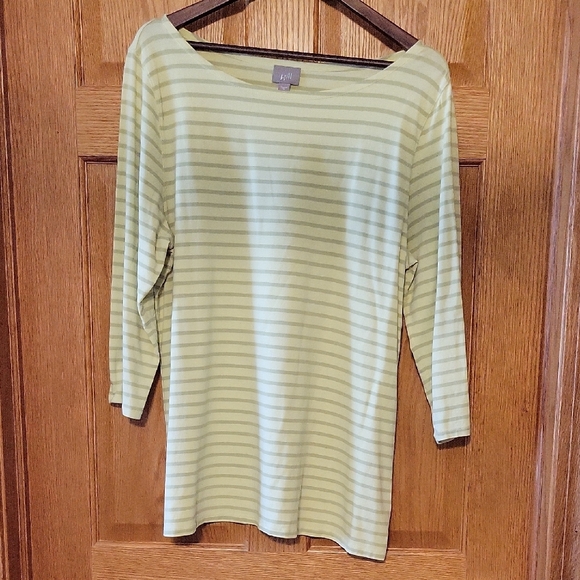 Elegant J.Jill tunic with soft stripes and a hint of stretch. 3/4 length sleeves with boat neck. Excellent condition with no stains holes or flaws.