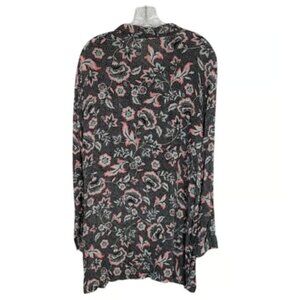 J. Jill Tunic Gray Pink Floral Collared Button Up Casual Grandma Womens Sz Small