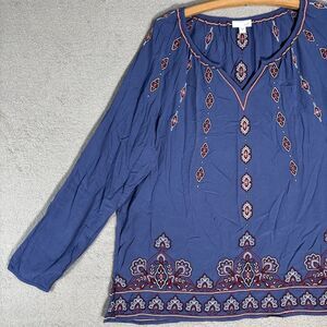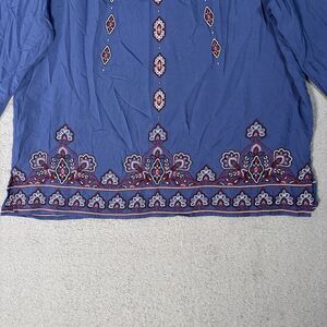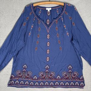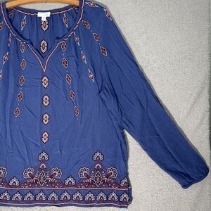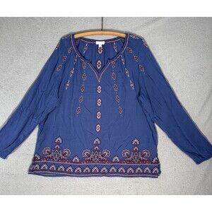 J Jill Tunic Peasant Top Women’s Size XL Blue Embroidered Boho Resort Geometric
