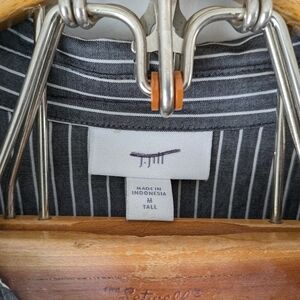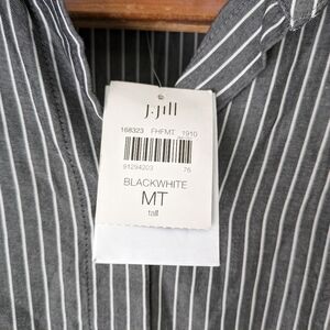 J. Jill Tunic Shirt Women's Medium T Gray White Stripe Button Up Collar Shirttail NEW