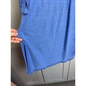 J Jill Tunic Sweater Blue Large Knit Linen Blend 3/4 Sleeve Side Slit Minimalist