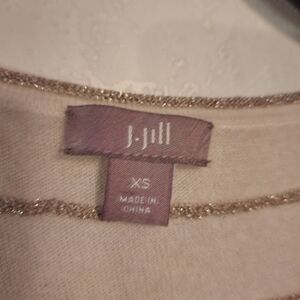 J. Jill Tunic Sweater Oversized Cream Gold Metallic Striped Sz XS