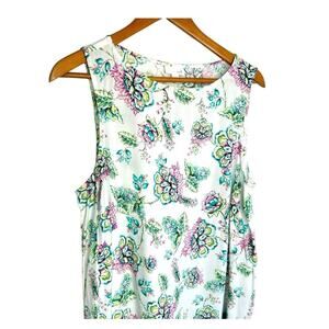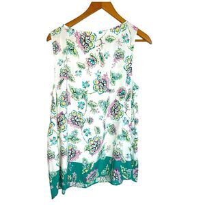 J. Jill Tunic Tank Top Womens M Medium White Green Sleeveless Floral Rayon Flowy