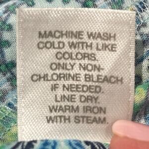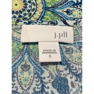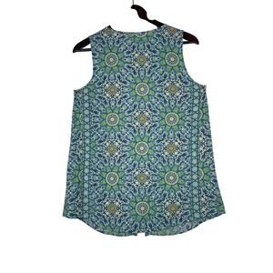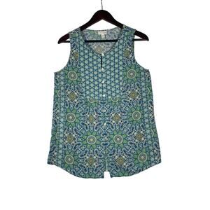 J Jill Tunic Top Blue/GN Small Lotus Floral Sleeveless Button-down Resort Casual